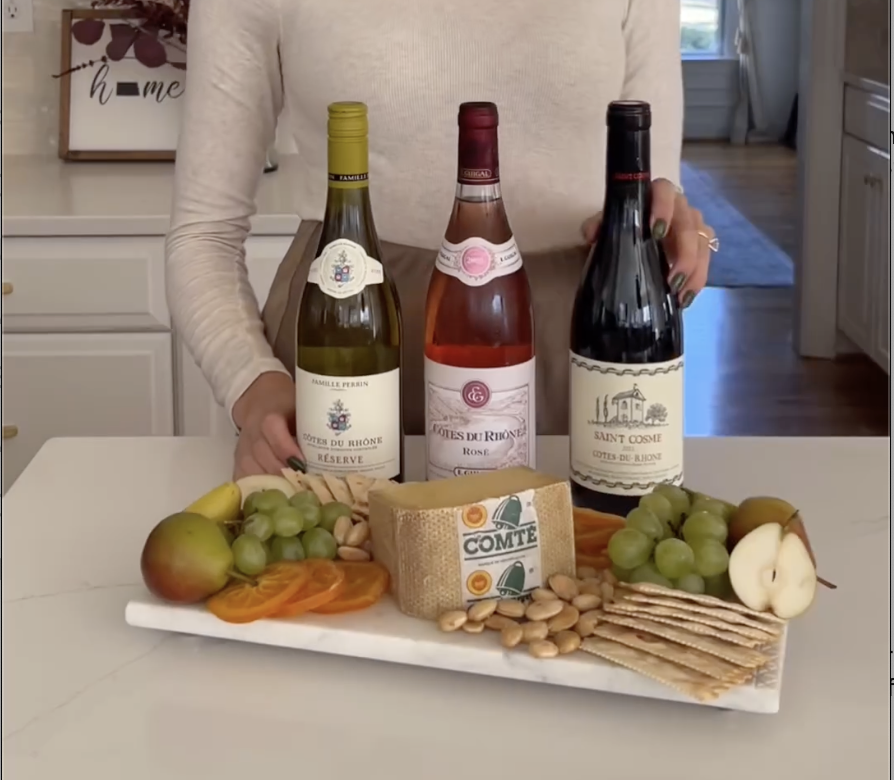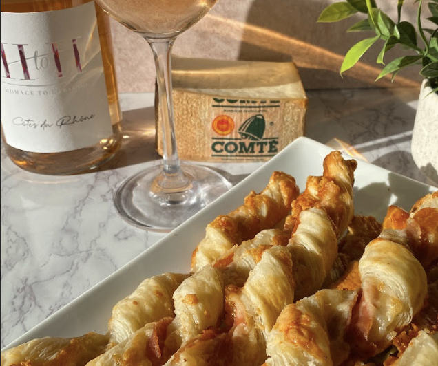 Comté cheese and Côtes du Rhône wines are both PDO (Protected Designations of Origin) which ensured that’s they are produced with sustainable pratices. Comté, with its nutty, earthy, and fruity flavors, is crafted in the Jura Mountains, where cows graze on wildflower meadows at 3,000 feet. These complex notes pair beautifully with the fruit, floral richness, and depth of red, white, and rosé wines from Côtes du Rhône, a historic wine region dating back to Roman times.
