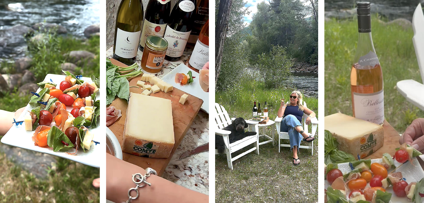 A backyard picnic with a French twist: Elaine’s Comté & prosciutto skewers, perfectly paired with Côtes du Rhône wines!